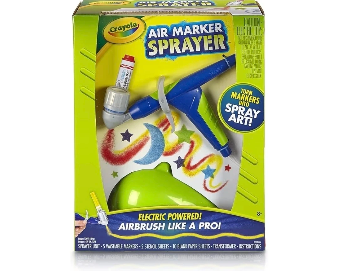 Turn your markers into spray art with this Crayola Air Marker Sprayer! It's electric powered, so you can airbrush like a pro. Comes with:
