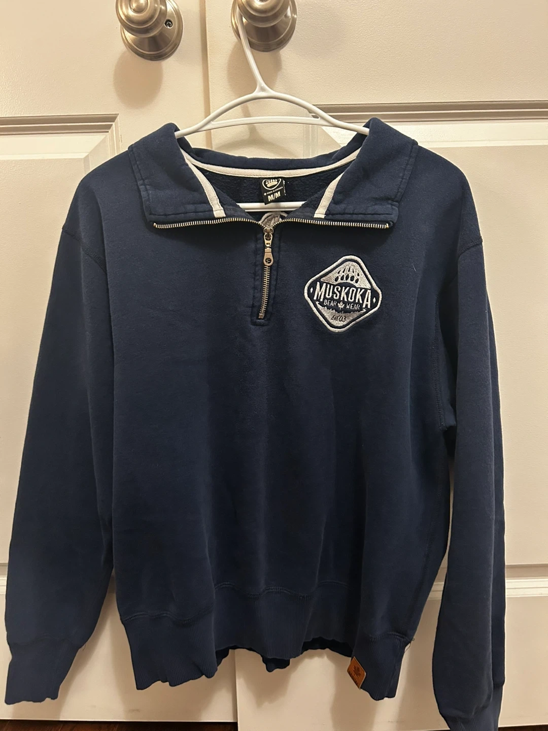 Cozy Muskoka quarter-zip pullover in size medium! It's a nice navy blue colour and in great condition. Super comfortable and stylish. DM for more details and pictures!!