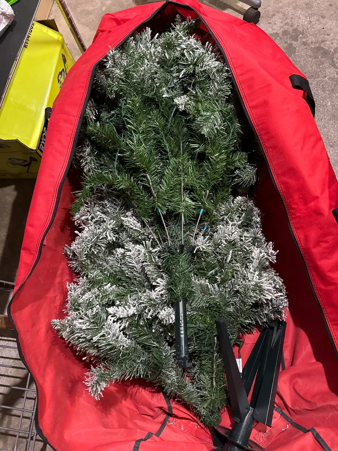 Giving an artificial Christmas tree that's ready to bring some holiday cheer to your home! It comes with a stand for easy setup. The tree is flocked with snow, giving it a wintery look.