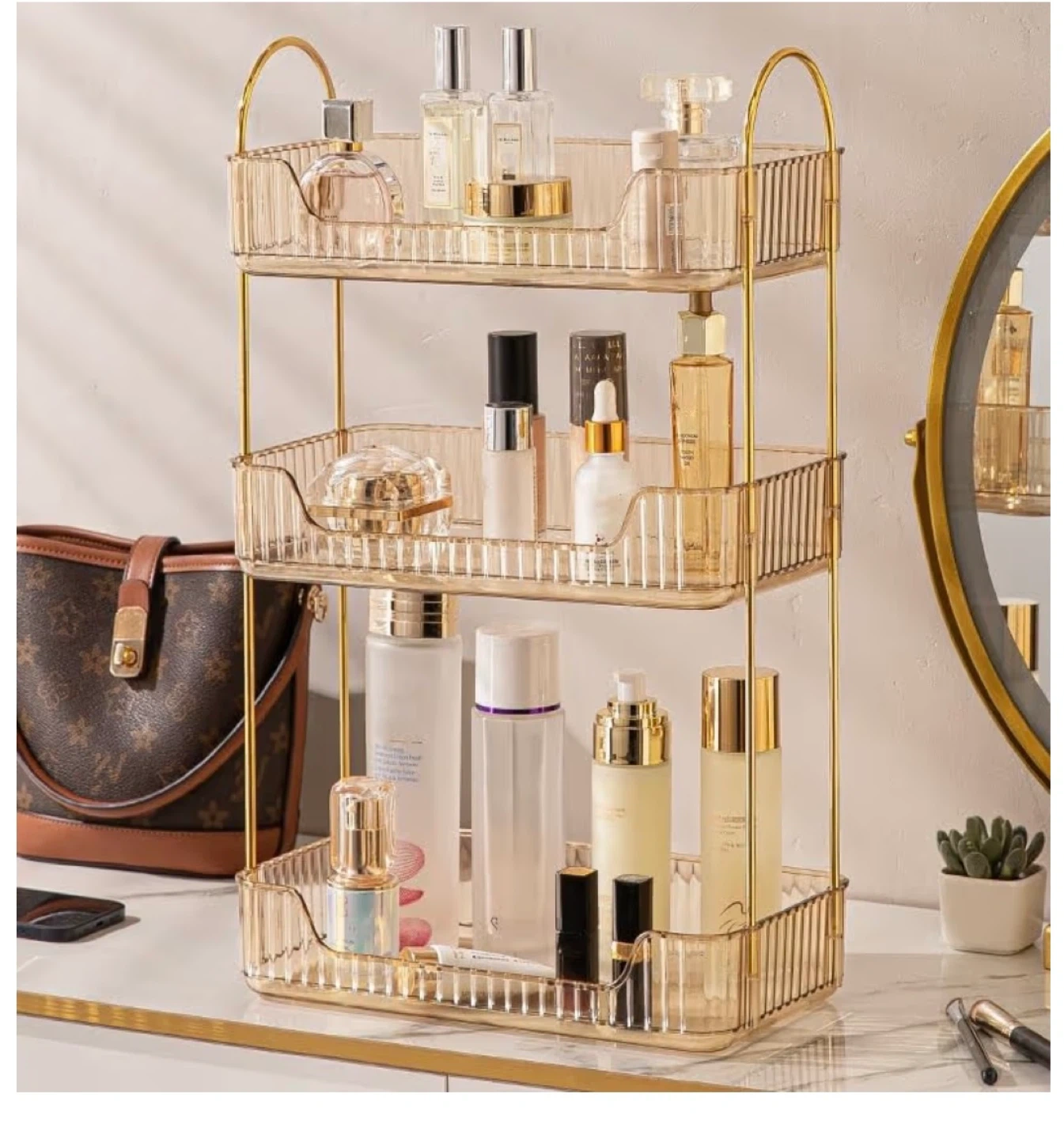 3-Tier Gold & Clear Cosmetic Organizer