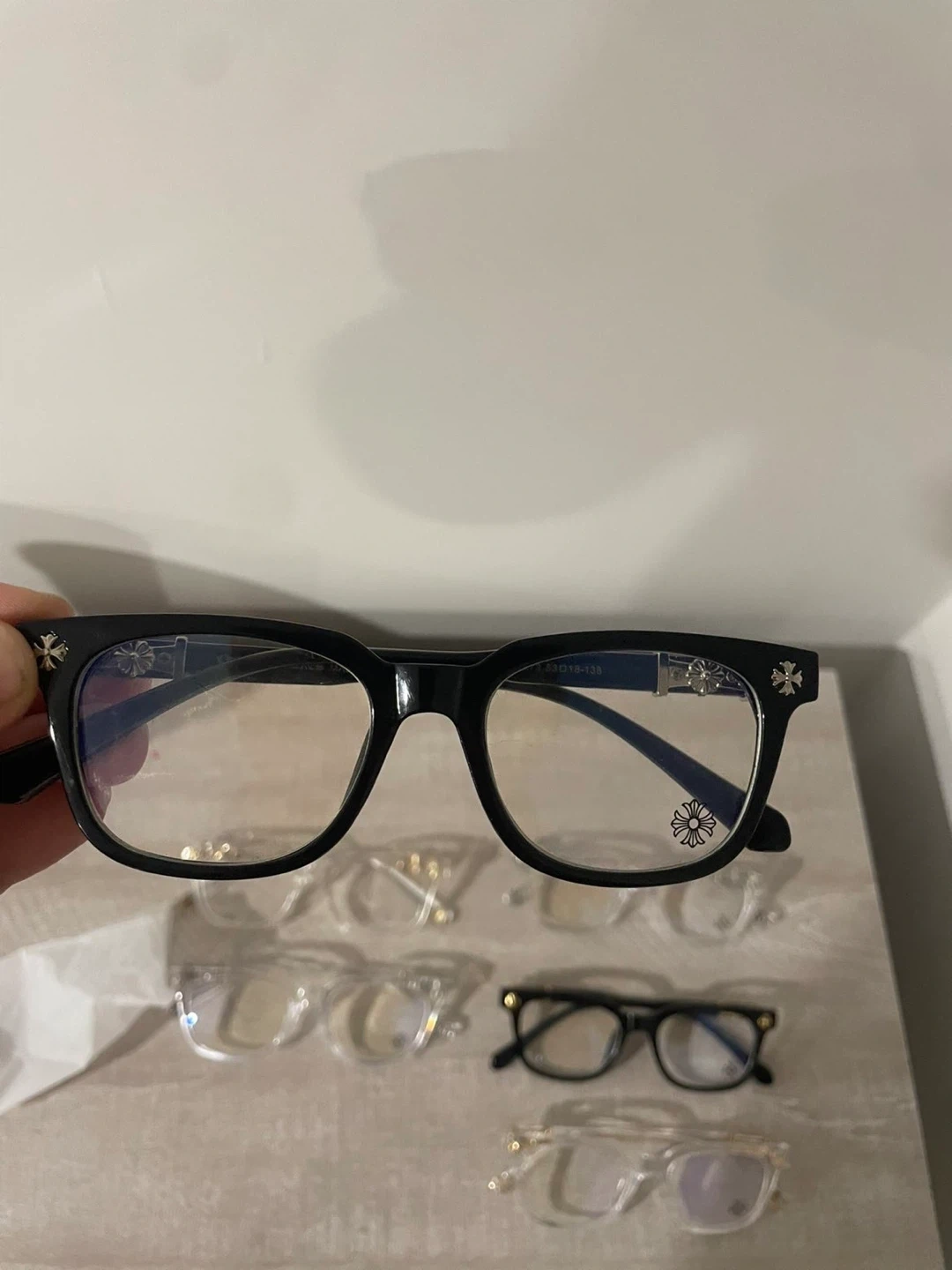 Selling a pair of Chrome Hearts eyeglasses. They come in both black and clear frames. These stylish eyeglasses are in great condition!