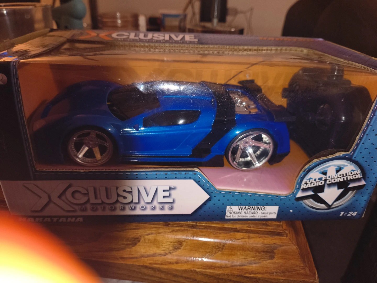 Selling a brand new Xclusive Motorworks full-function radio control car! It's in its original packaging and ready for some fun. Requires 6 AA batteries (not included).