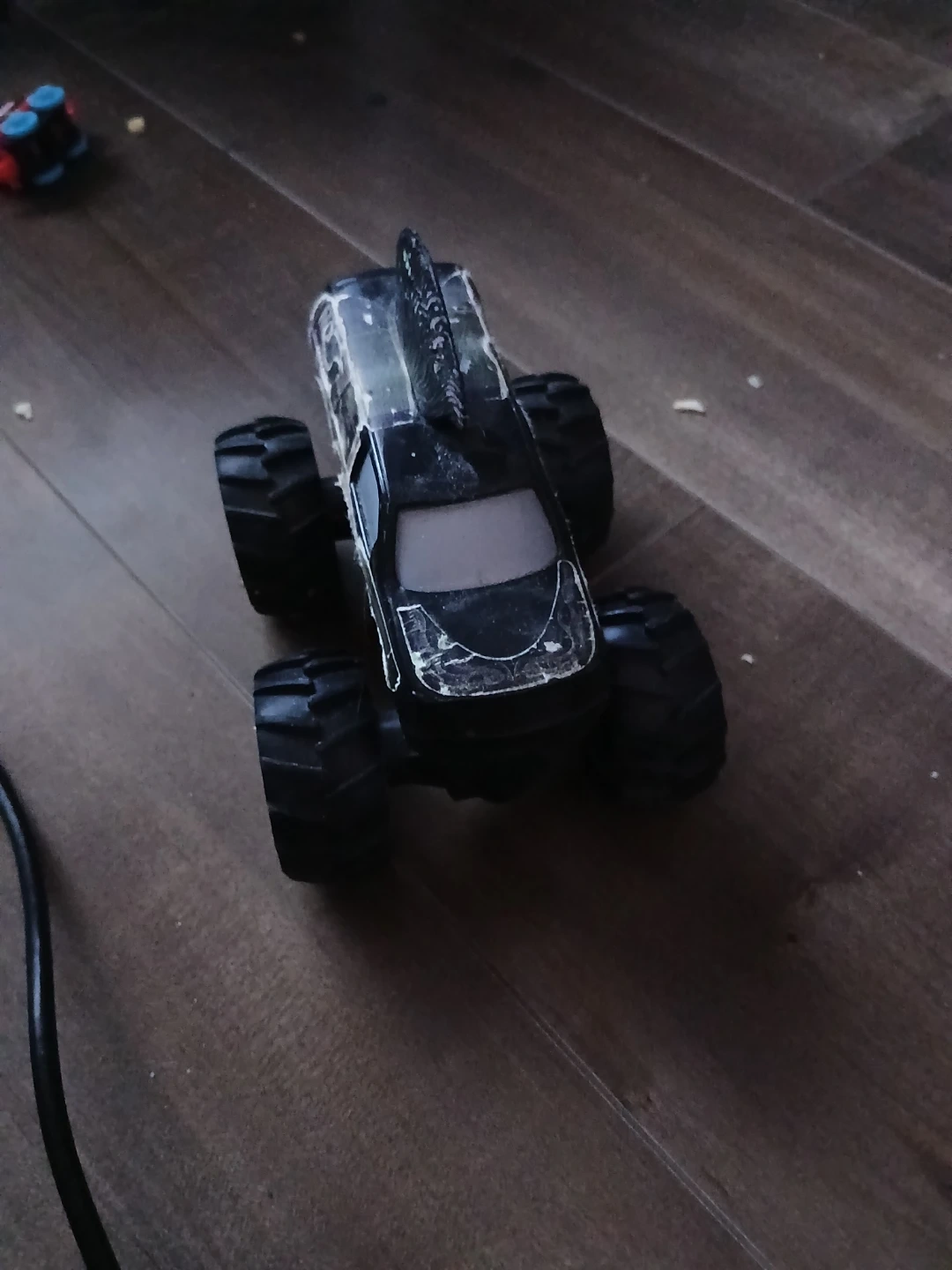 Selling a used black monster truck toy! It's got some wear and tear, but still plenty of fun left in it. Perfect for kids who love playing with cars and trucks!