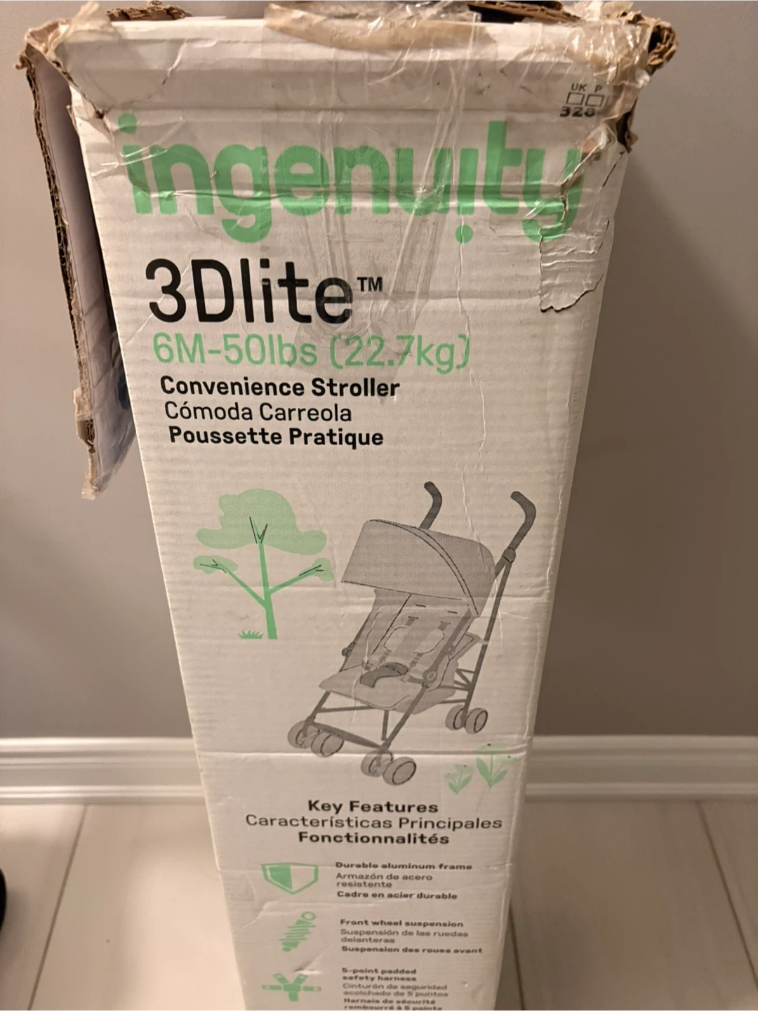 New Ingenuity 3Dlite convenience stroller! It's suitable for children from 6 months up to 50 lbs (22.7 kg). It also comes with the original box