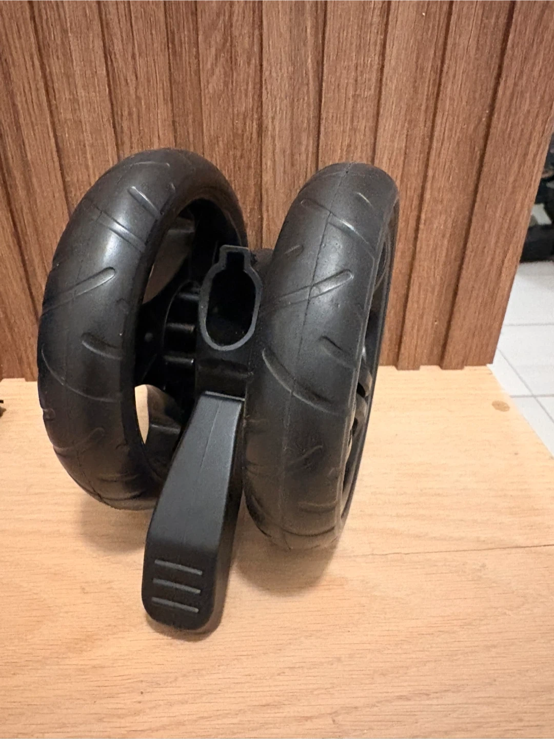 A wheel is missing
