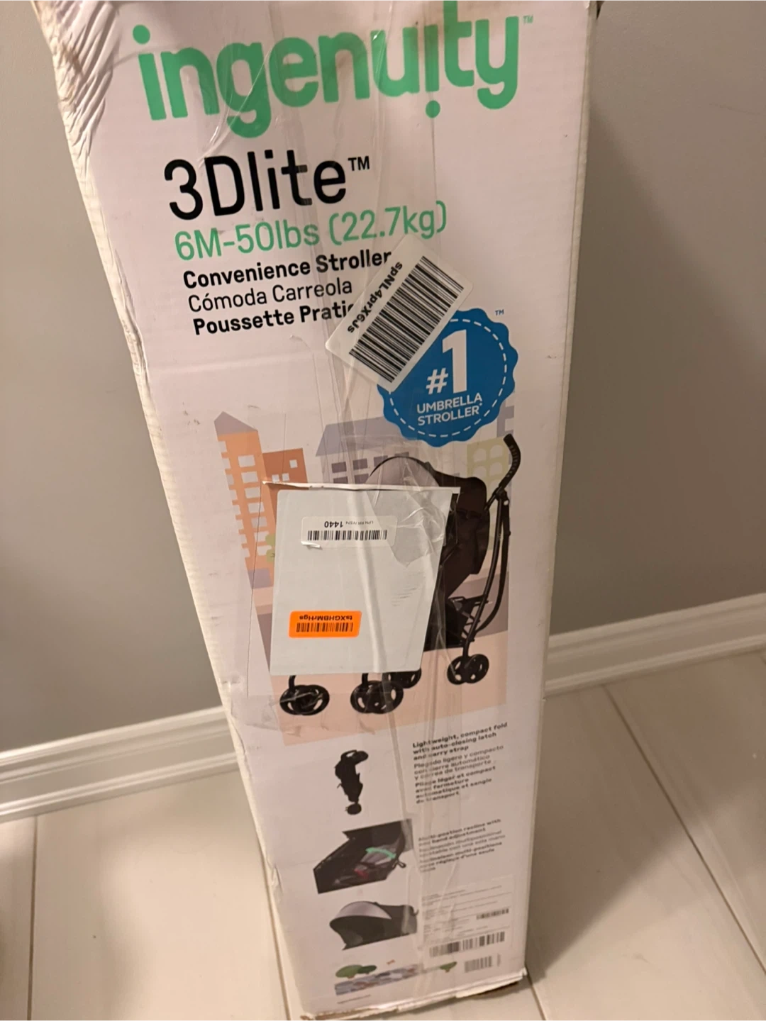 New Ingenuity 3Dlite convenience stroller! It's suitable for children from 6 months up to 50 lbs (22.7 kg). It also comes with the original box
