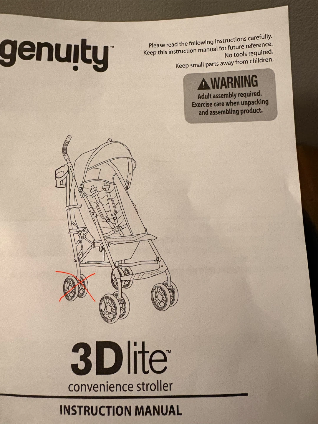 Ingenuity 3Dlite Convenience Stroller, It’s missing a wheel