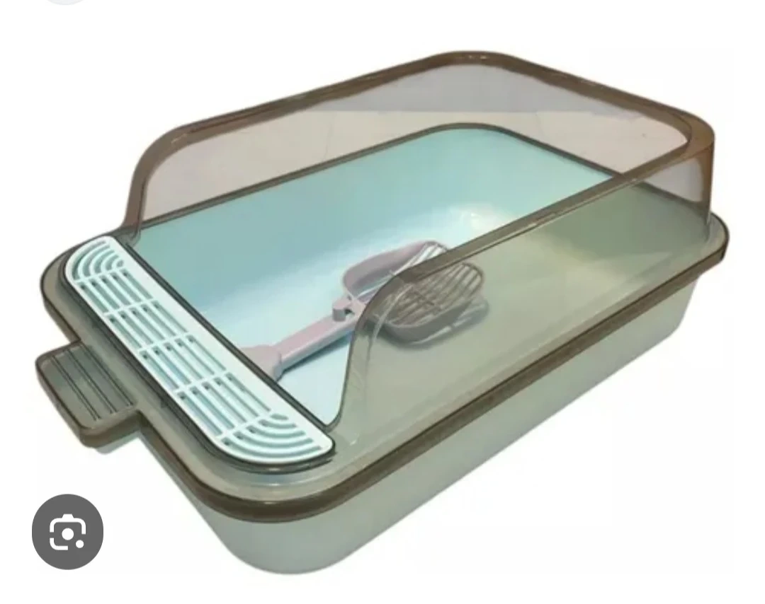 Selling a brand new...hooded cat litter box that comes with a scoop! It's in great condition and ready for a new kitty friend. The box is a light blue colour with a grey tinted hood.