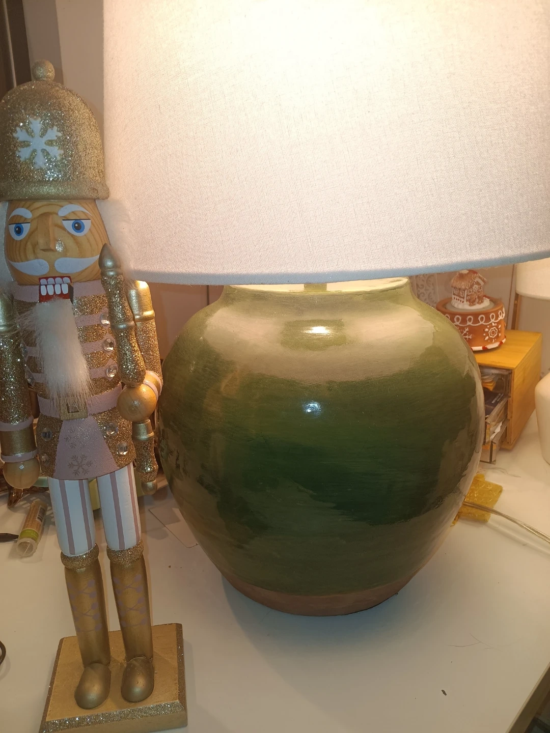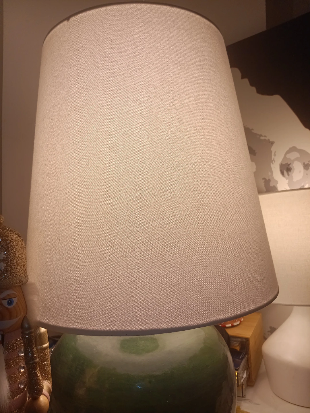 Selling a green ceramic table lamp! It's in great condition and would look lovely in any room. The lamp has a nice, smooth finish and a neutral lampshade that complements the base beautifully. Perfect for adding a touch of color and warmth to your home!