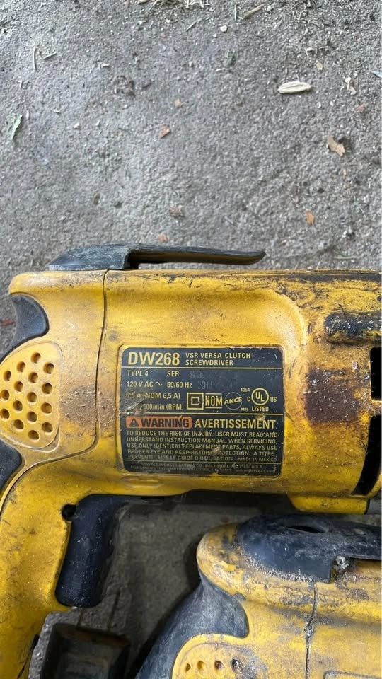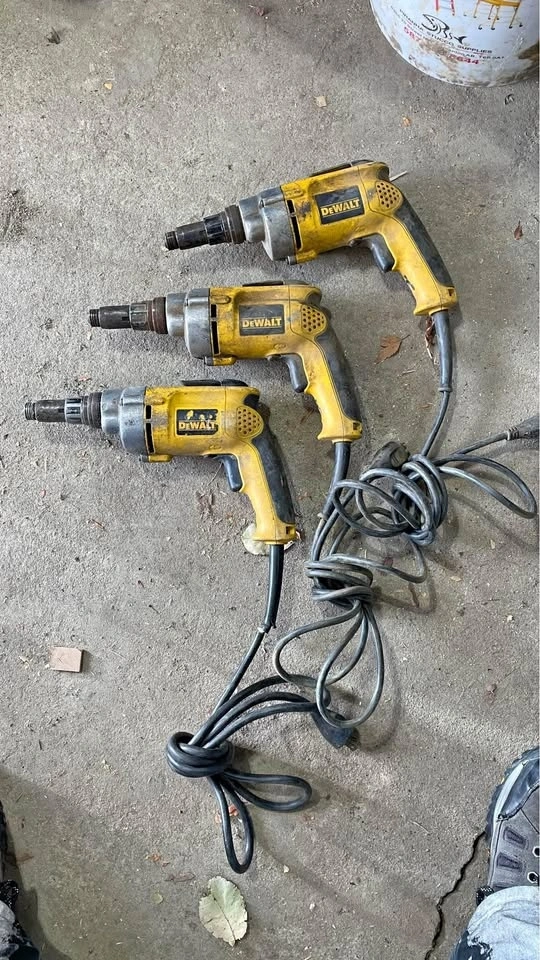 Dewalt DW268 screw guns (3). Used and still going strong. 1 gun has a split cord, but only the outer casing.