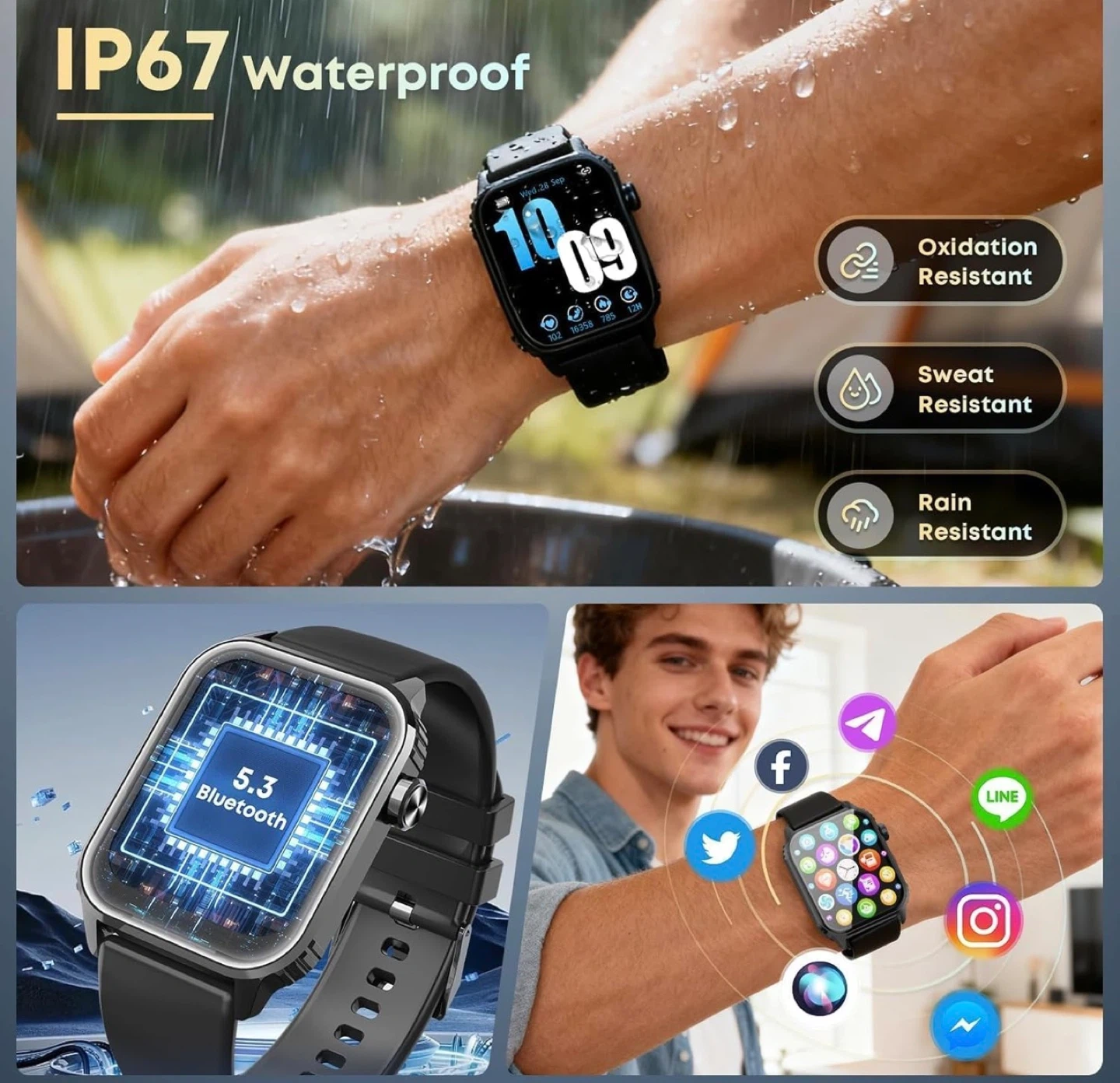 120 Sports Modes Smartwatch with 1.83 inches HD Display, Heart Rate/Sleep Monitor, IP67 Waterproof, Bluetooth Call & Music Control