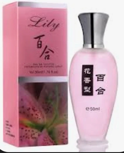 Selling a bottle of Lily Eau de Perfume. It comes in a 50ml size. The bottle and packaging feature a lovely pink colour and floral design. 3 available