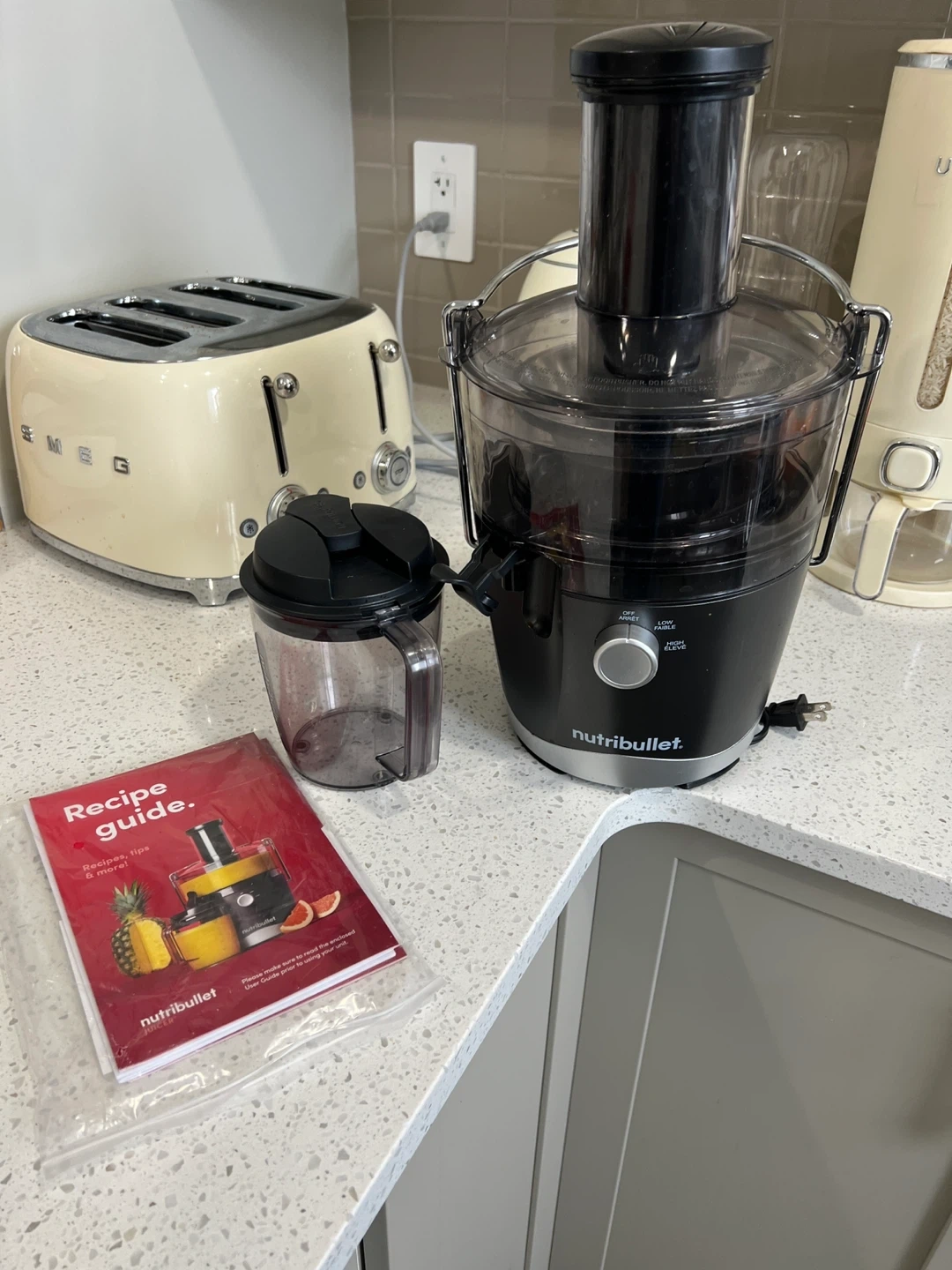 Selling a Nutribullet juicer that's in great condition! It comes with the recipe guide as shown in the pictures. This juicer is perfect for making fresh and healthy juices at home. It's easy to use and clean, making it a convenient addition to your kitchen