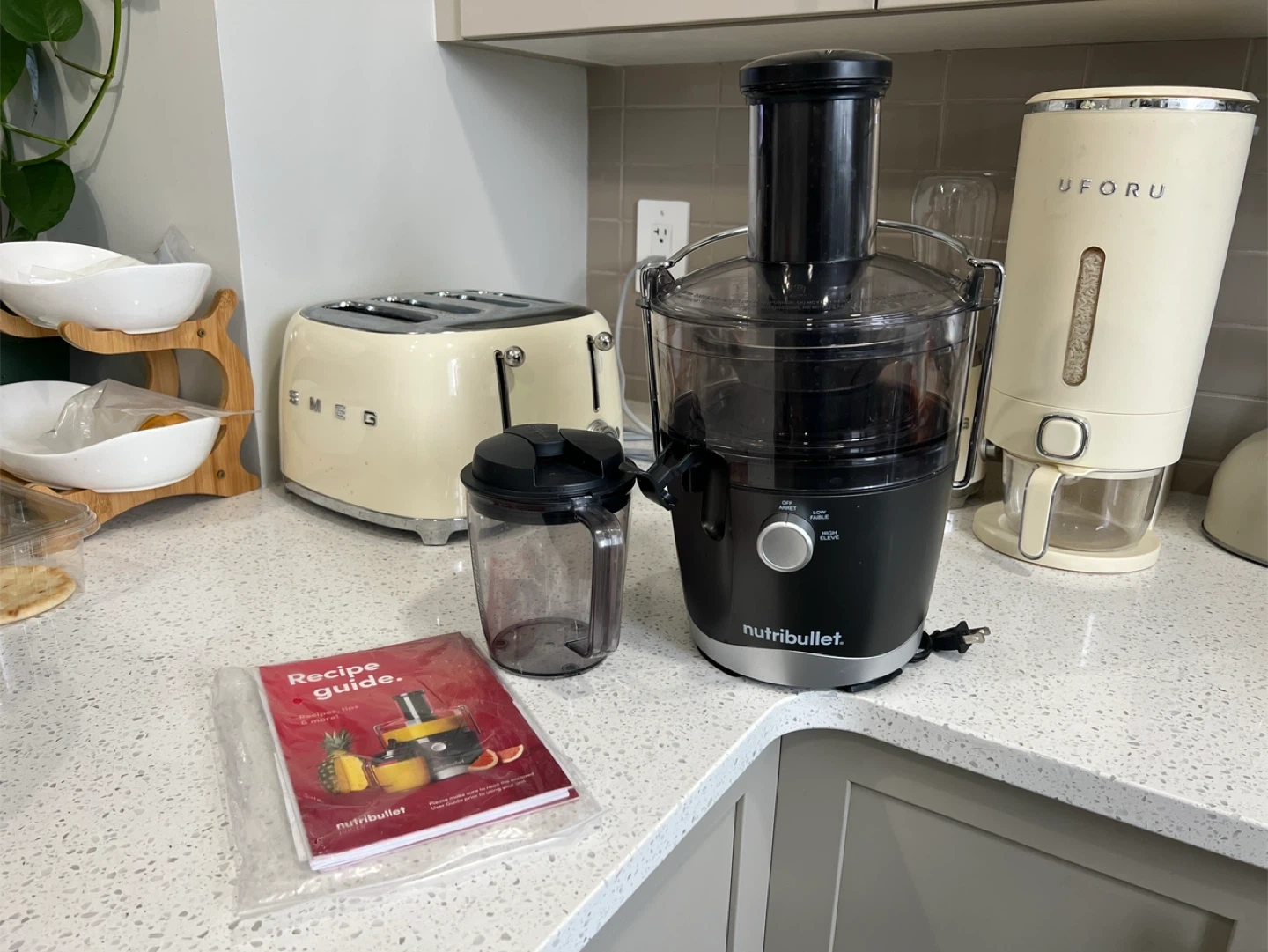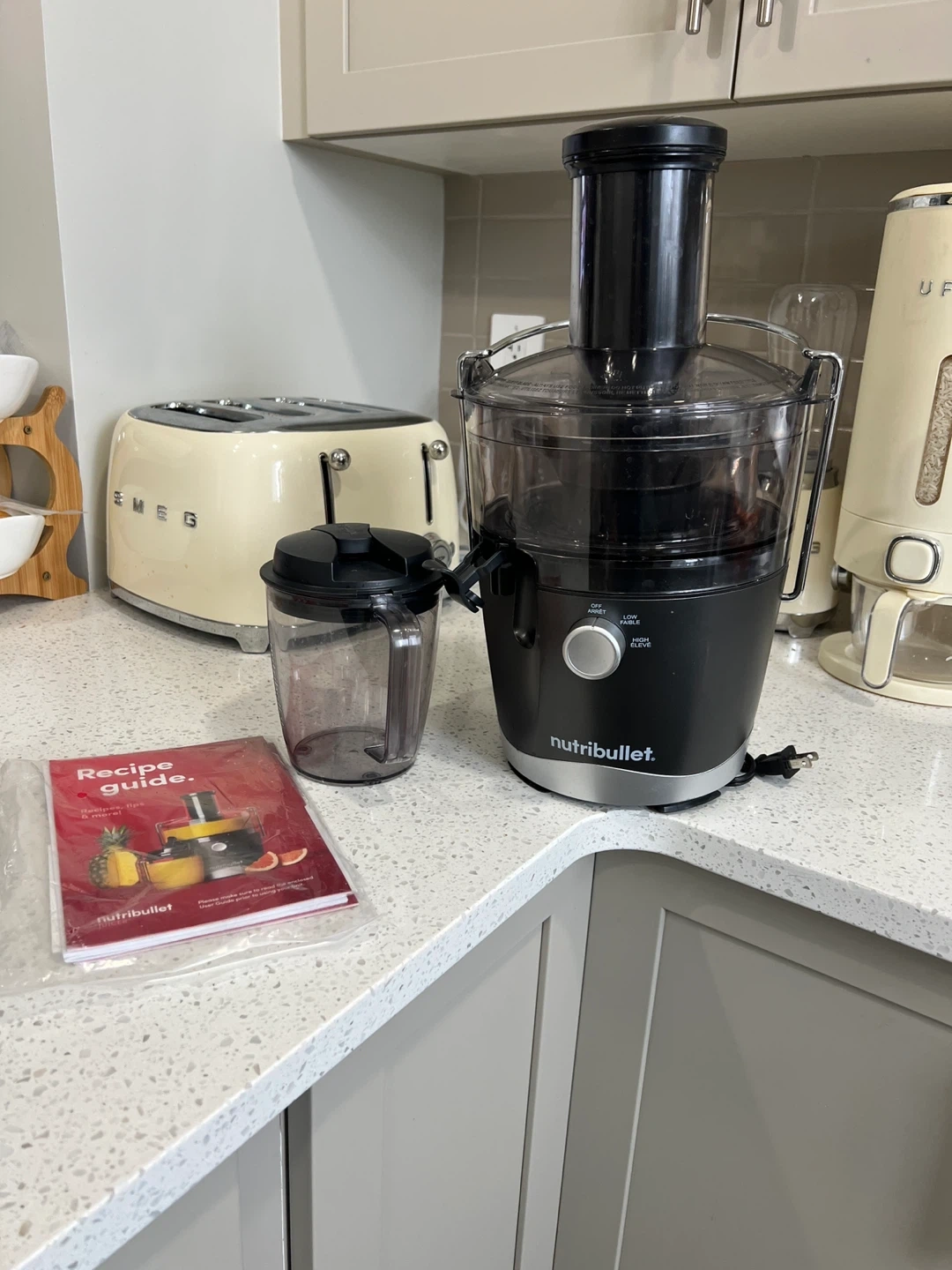 Selling a Nutribullet juicer that's in great condition! It comes with the recipe guide as shown in the pictures. This juicer is perfect for making fresh and healthy juices at home. It's easy to use and clean, making it a convenient addition to your kitchen