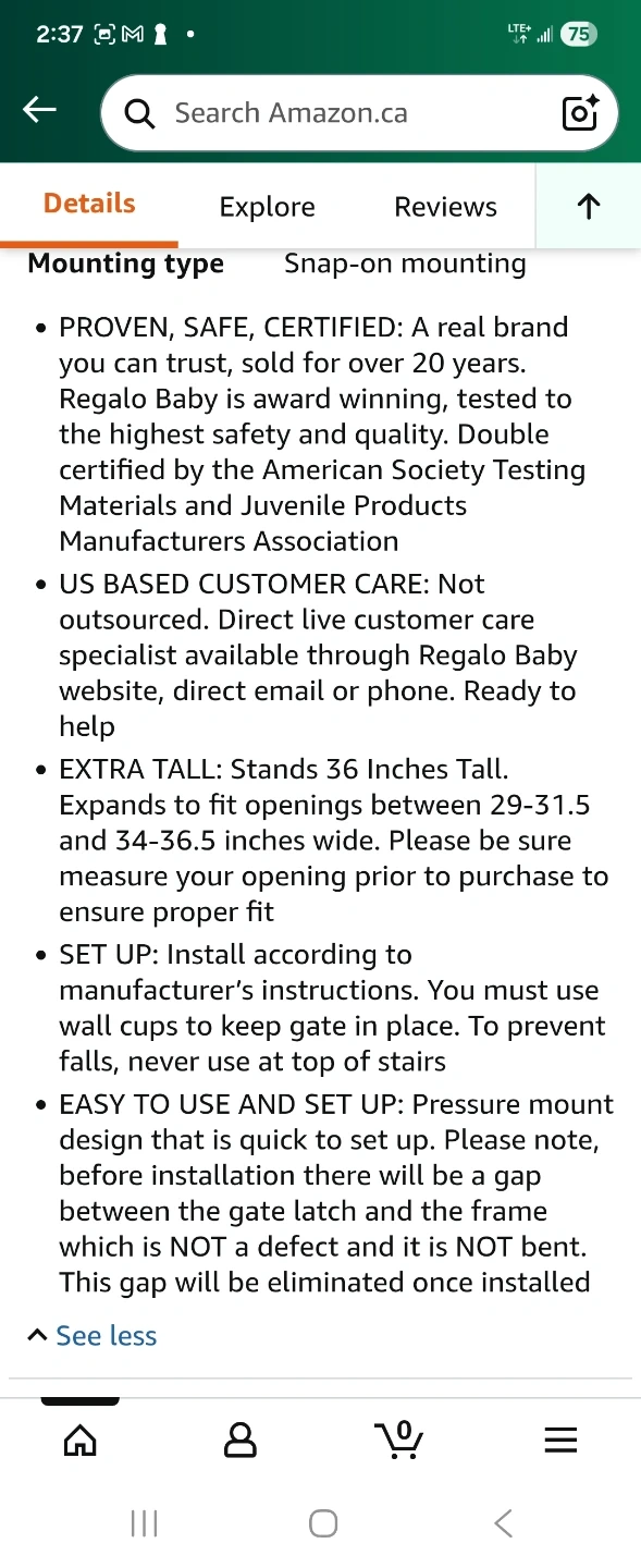 Keep your little ones safe with this Regalo Easy Step Extra Tall Safety Gate! This gate stands 36 inches tall and fits openings between 29-36.5 inches wide. It is in new condition, complete with the original box and has never been installed.