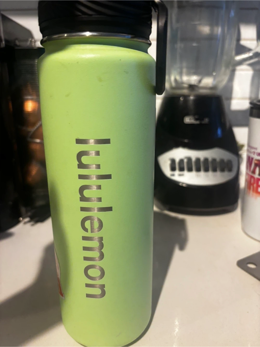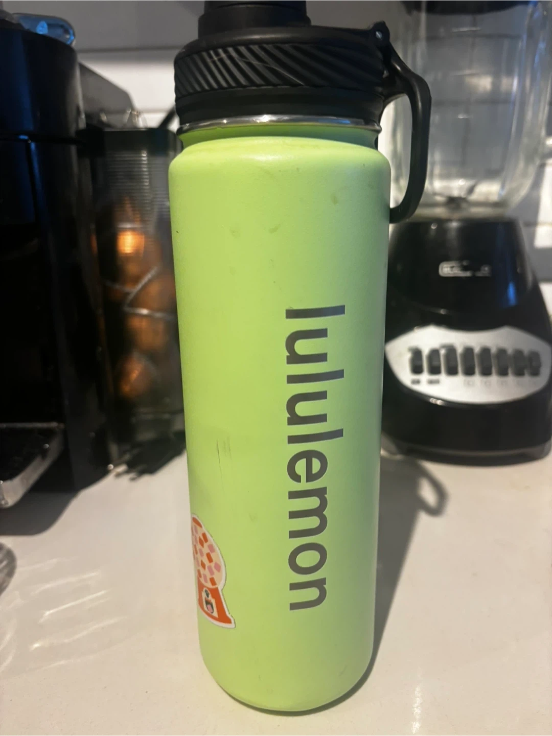 Selling a Lululemon water bottle in a bright lime green colour. It's in good condition just dented from bottom. and ready to keep you hydrated during your workouts or daily activities!