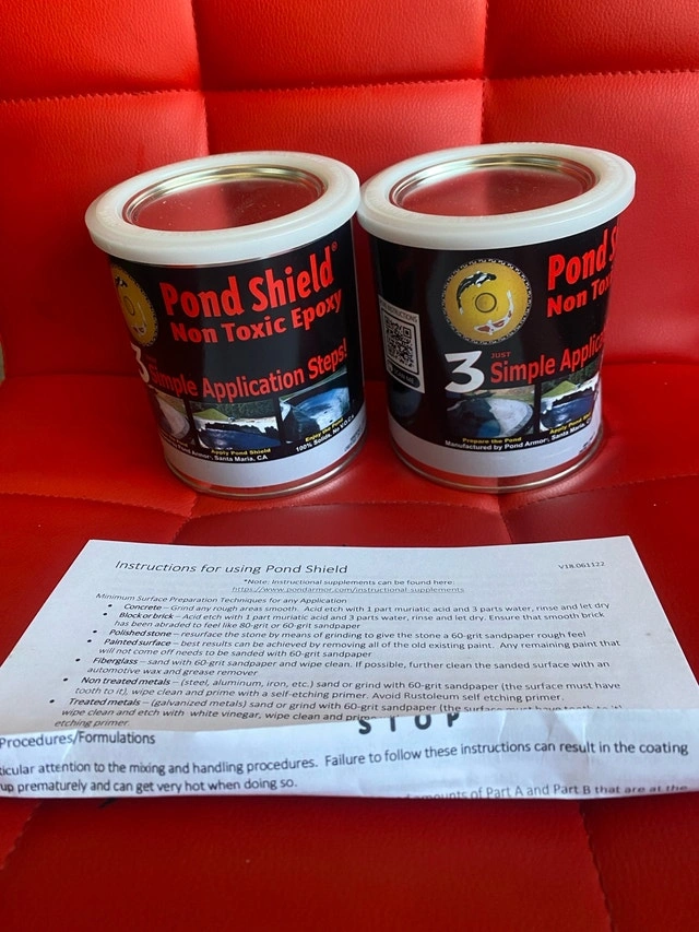 Pond Armor Coating ✅ Safe for fish & plants ✅ Easy to apply, low maintenance ✅ Durable space-age polymers ✅ Bonds to concrete, stone, fiberglass, wood & steel ✅ Flexible & impact-resistant ✅ Chemical & chlorine-resistant ✅ Ideal for ponds, fountains & more Details: Color: Grey Size: 1.5 quarts Coverage: 60 sq.ft. (smooth surfaces)