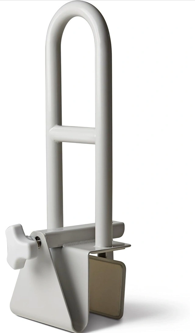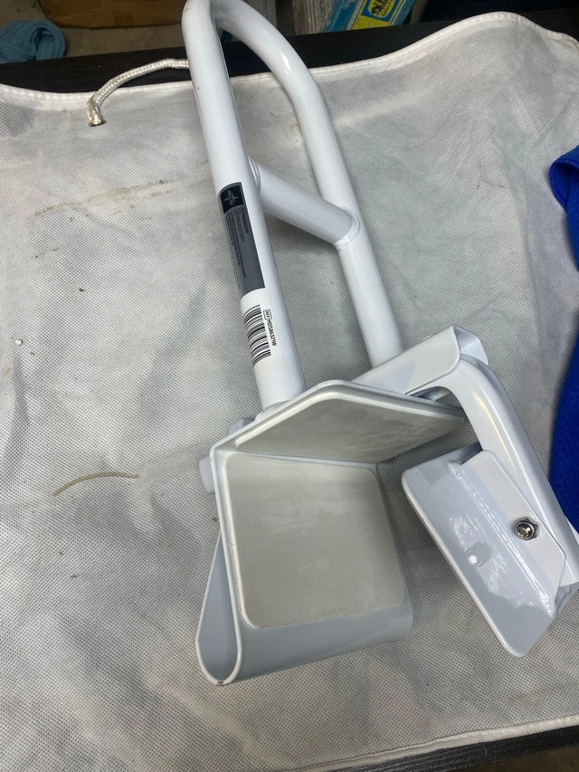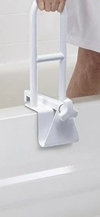 Selling an adjustable tub grab bar in white. It's in great condition and ready to be installed. This grab bar provides extra support and stability when getting in and out of the tub. It easily attaches to the side of the tub with an adjustable clamp. Perfect for anyone who needs a little extra help in the bathroom!