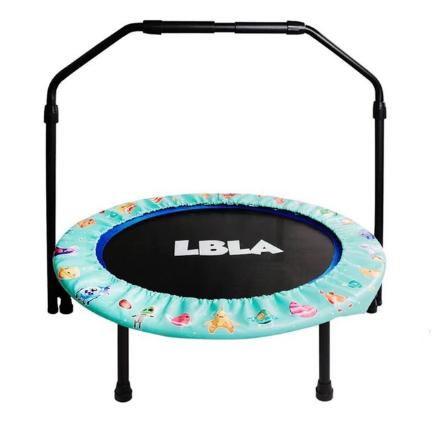 This 36" kids trampoline is made of bold steel and comes with 6 legs for added support. The legs with rubber tips prevent scratches. The circular protective outerwear protects your children from falling onto the hard steel. Safety Handrail for Balance Keeping. Easy to Assemble & Disassemble. The Round bungee rebounder can be folded for convenient storage. Great for Kids Growth