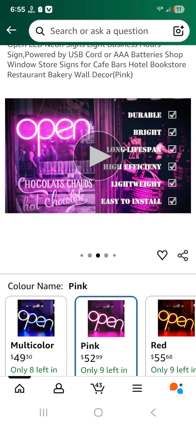 Buy & SellNeon Open SignNeon Open Sign$15Ideal for stores and cafe. On Amazon it's for 52$.WHERE TO MEETCheck LocationView MapSELLERInderpal SinghBonnington100 reviews0 chats·0 favorites·14 viewsSEND CHAT TO SELLERHi Inderpal Singh! I’m interested in your listing.Hi Inderpal Singh! I’m interested in your listing.Get the Karrot app to chatSign In to chat