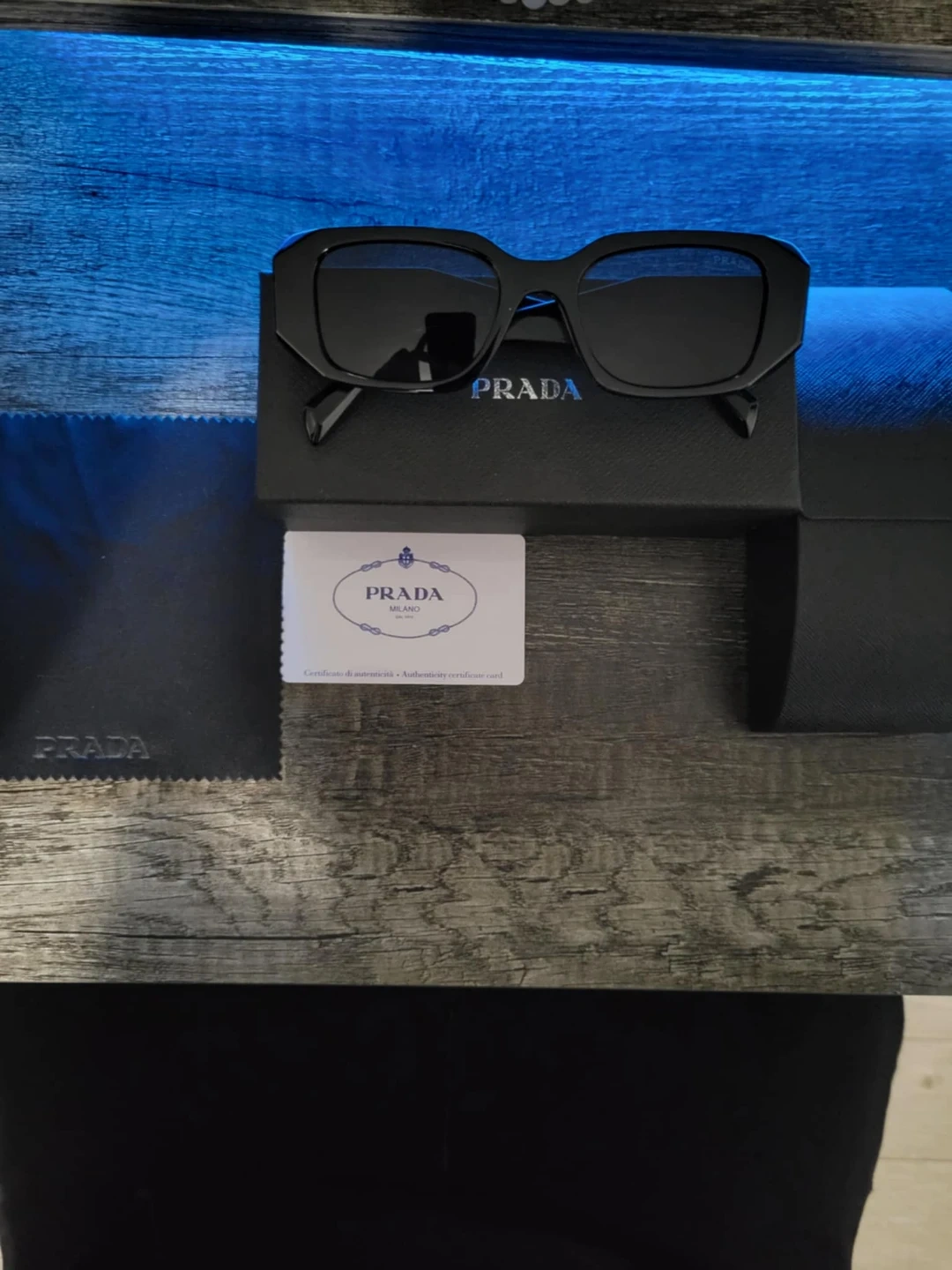 Selling a pair of Prada sunglasses in black. They come with the original box and authenticity card. Stylish and in great condition! unisex!
