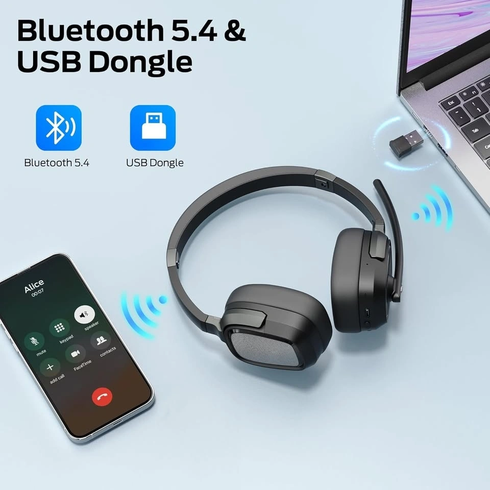 Monster VoiceLink 200 Wireless Headset with Mic for Work, Bluetooth V5.4 Headphones with AI Noise Cancelling Mic & USB Dongle, 60H Playtime & Mic Mute for Computer/Laptop/PC/iPhone/Android
