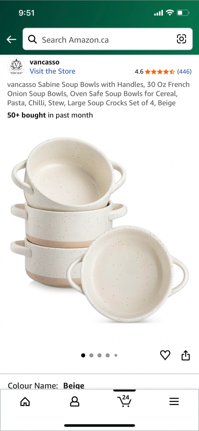 Selling a set of four vancasso Sabine soup bowls! These are perfect for serving up your favourite soups, stews, or even pasta dishes. They're oven-safe and have convenient handles for easy carrying. The bowls are beige and hold 30 oz each. Comes with the original box!