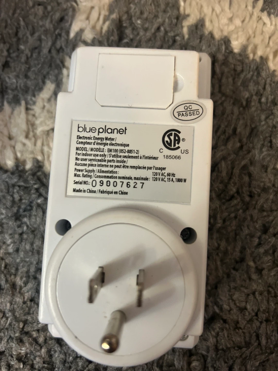 Selling a Blue Planet EM100 Electronic Energy Meter. It measures energy usage and can help you monitor your electricity consumption. Model number is EM100 (052-8851-2). It's rated for 120 VAC, 60 Hz, and a maximum of 120 VAC, 15 A, 1800 W