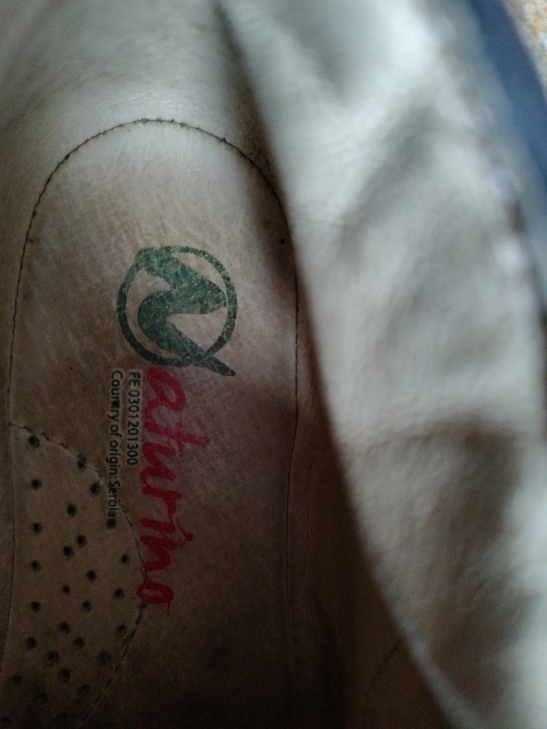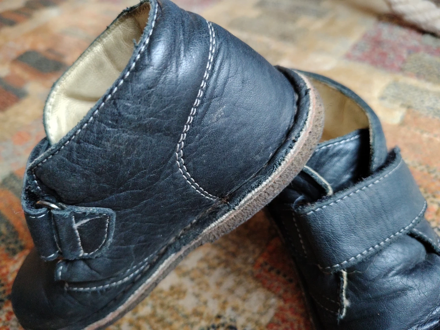 Here are some cute Saturno baby shoes! They're soft black leather and have a velcro strap. They show some signs of wear, but still have lots of life left! Size 26