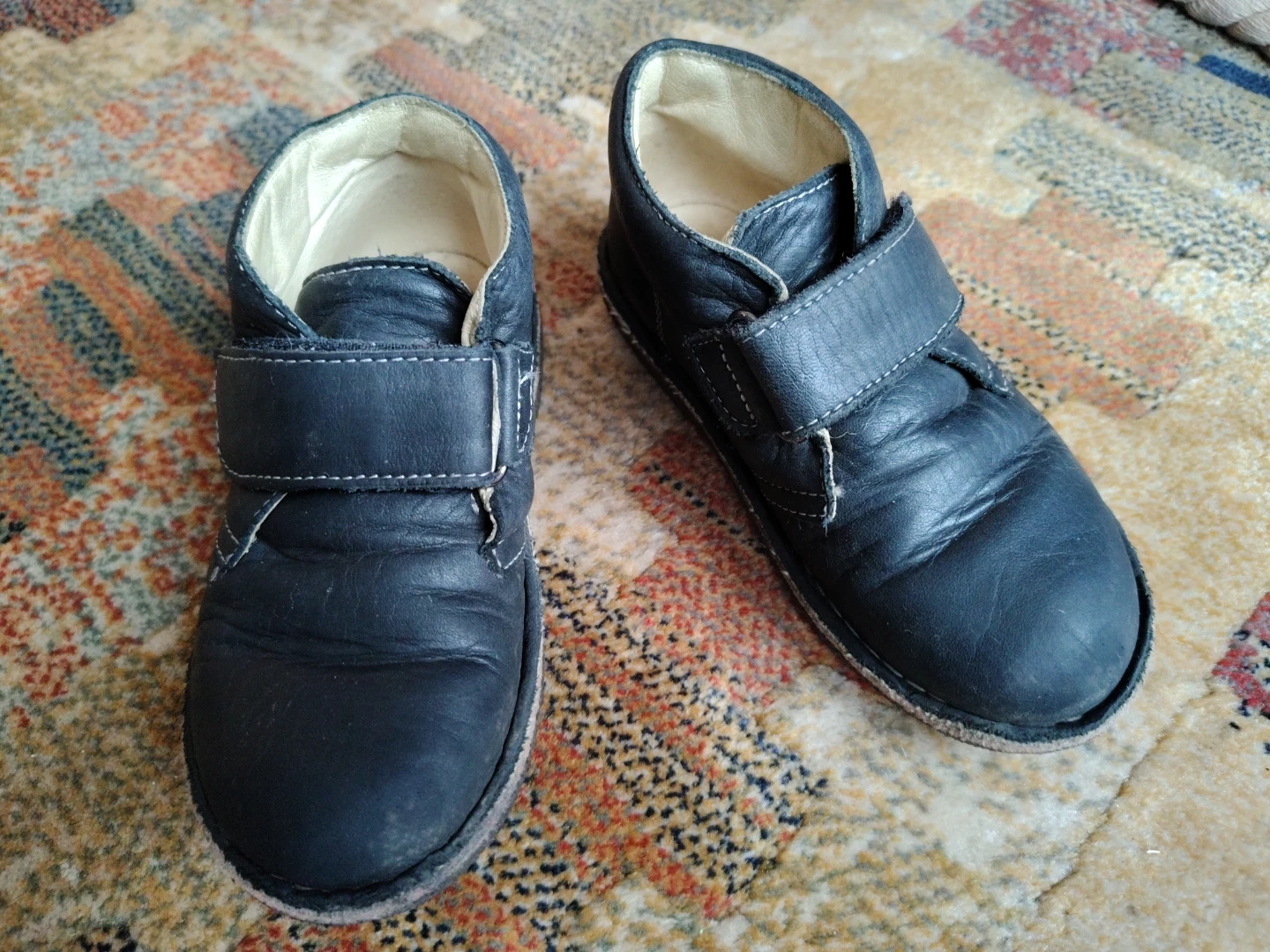 Here are some cute Saturno baby shoes! They're soft black leather and have a velcro strap. They show some signs of wear, but still have lots of life left! Size 26