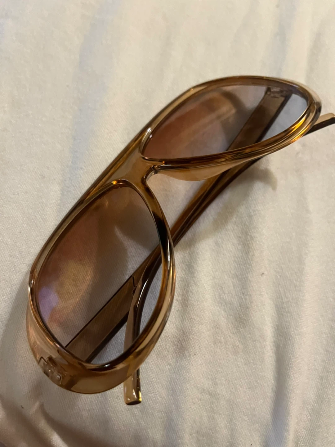 Selling a pair of aviator-style sunglasses in a stylish brown colour! They're in good condition and ready for sunny days and protecting eyes from debris.