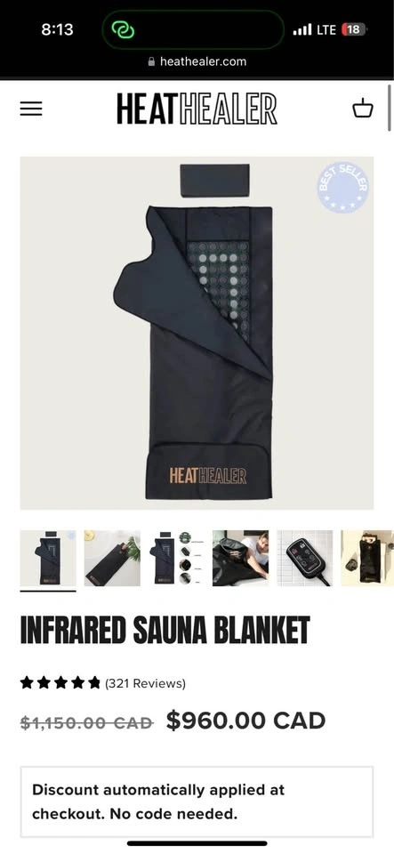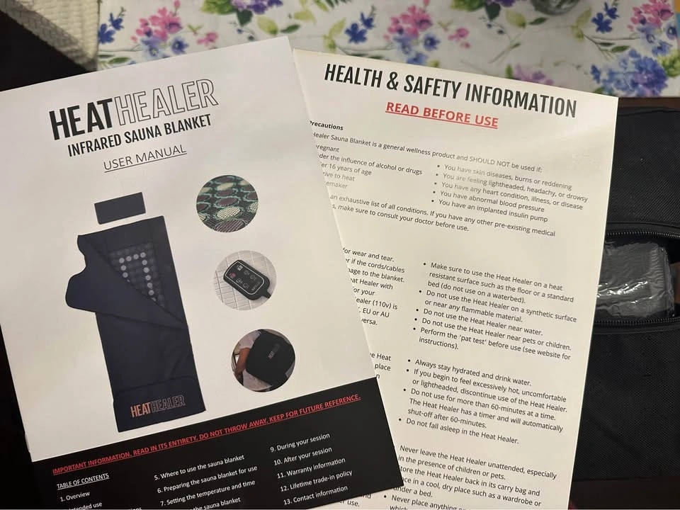 3 sauna blankets from Heat Healer. Info is in the pictures and price from ordering. All are new still with plastic and foam wrapped