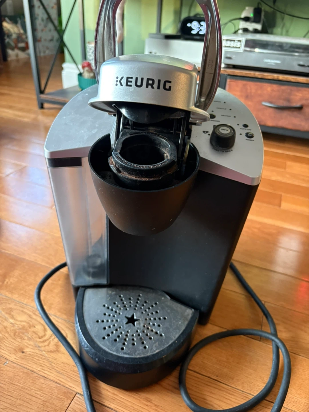 Getting rid of a Keurig single cup coffee maker. It's in okay condition. It’s an older machine and probably needs a good clean before use. However, it works perfectly fine! We don’t use it anymore (switched to french press), so we’re just trying to get rid of it.