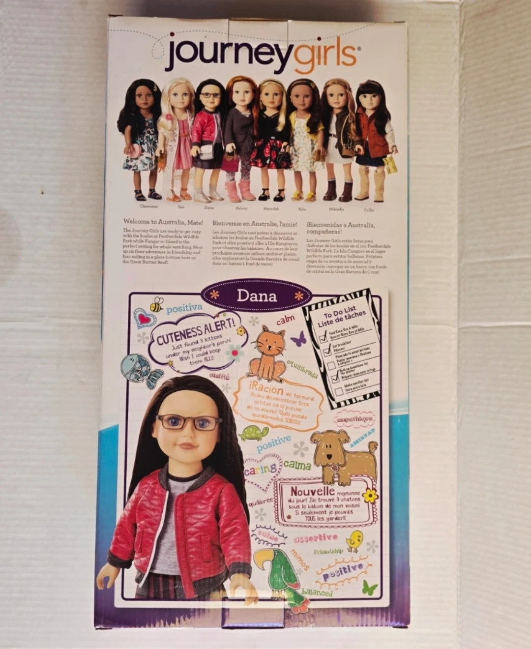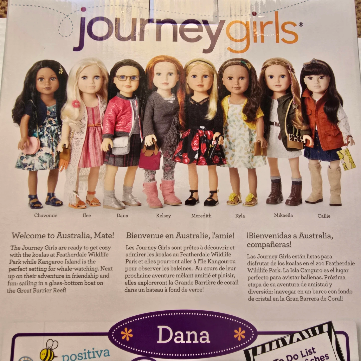 Brand New! Journey Girls doll named Dana! She's 18 inches tall and comes with her original box. She's ready for new adventures and friendship! Journey Girl dolls produced in 2013 and no longer.