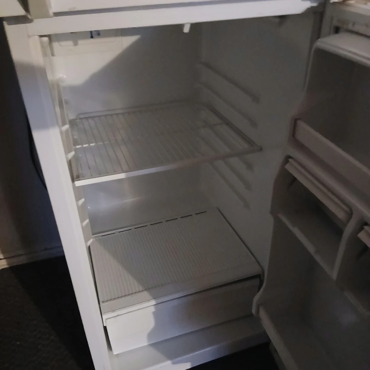 The interior is clean and ready to use. Perfect for a small apartment or as a second fridge.