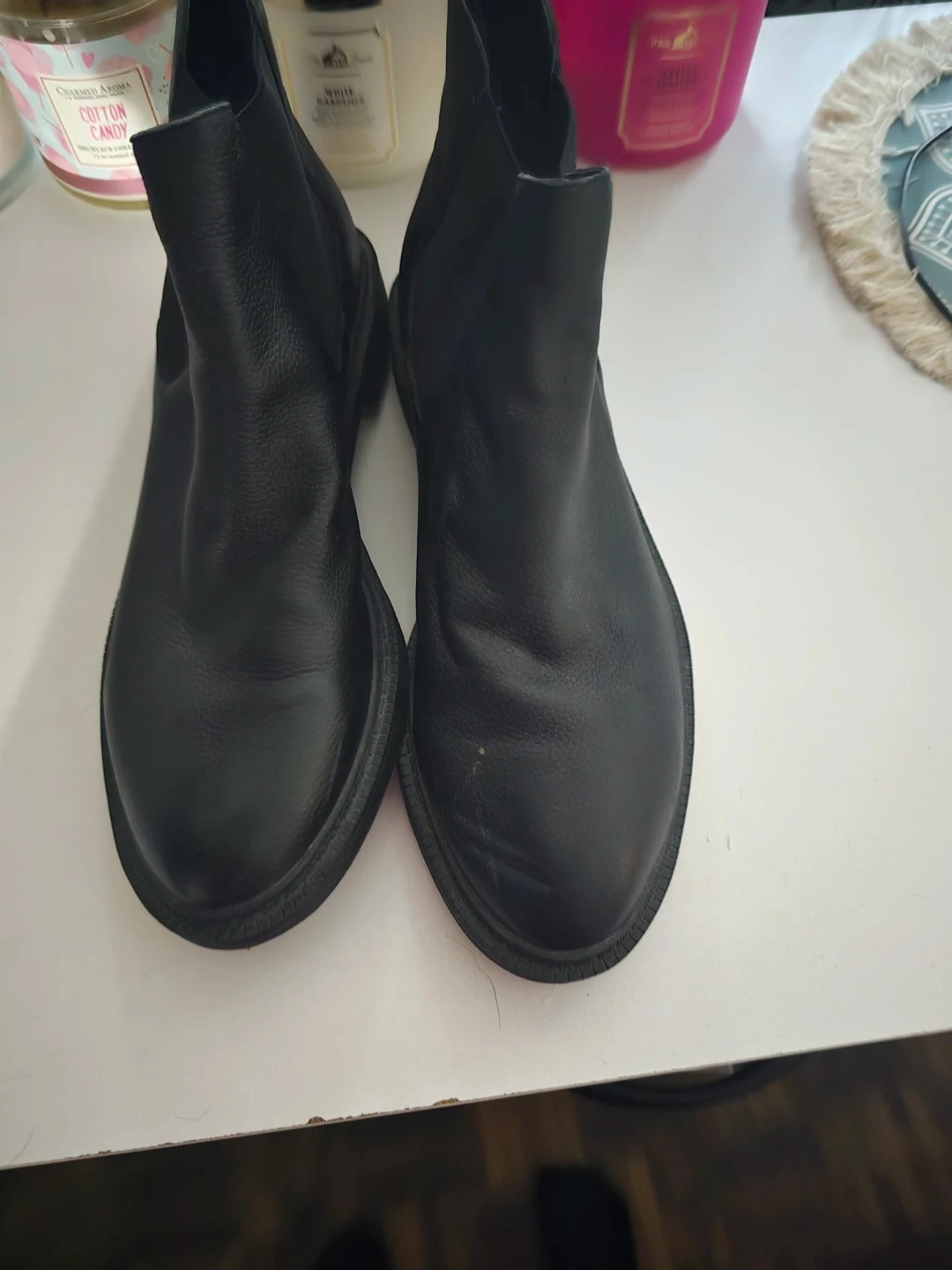 Selling a pair of black leather Chelsea boots in size 9 They're in good condition and ready for a new owner!