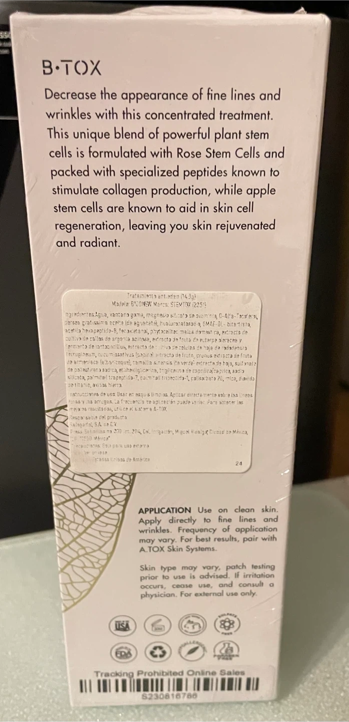 I'm selling a brand new Stemtox B-Tox Skin Restore. This unique blend of powerful Rose & Apple Stem Cells is composed of phytonutrients and antioxidants that plump the look of your skin for an ageless and rejuvenated appearance. It helps decrease the appearance of fine lines and wrinkles with this concentrated treatment. Originally bought for $250