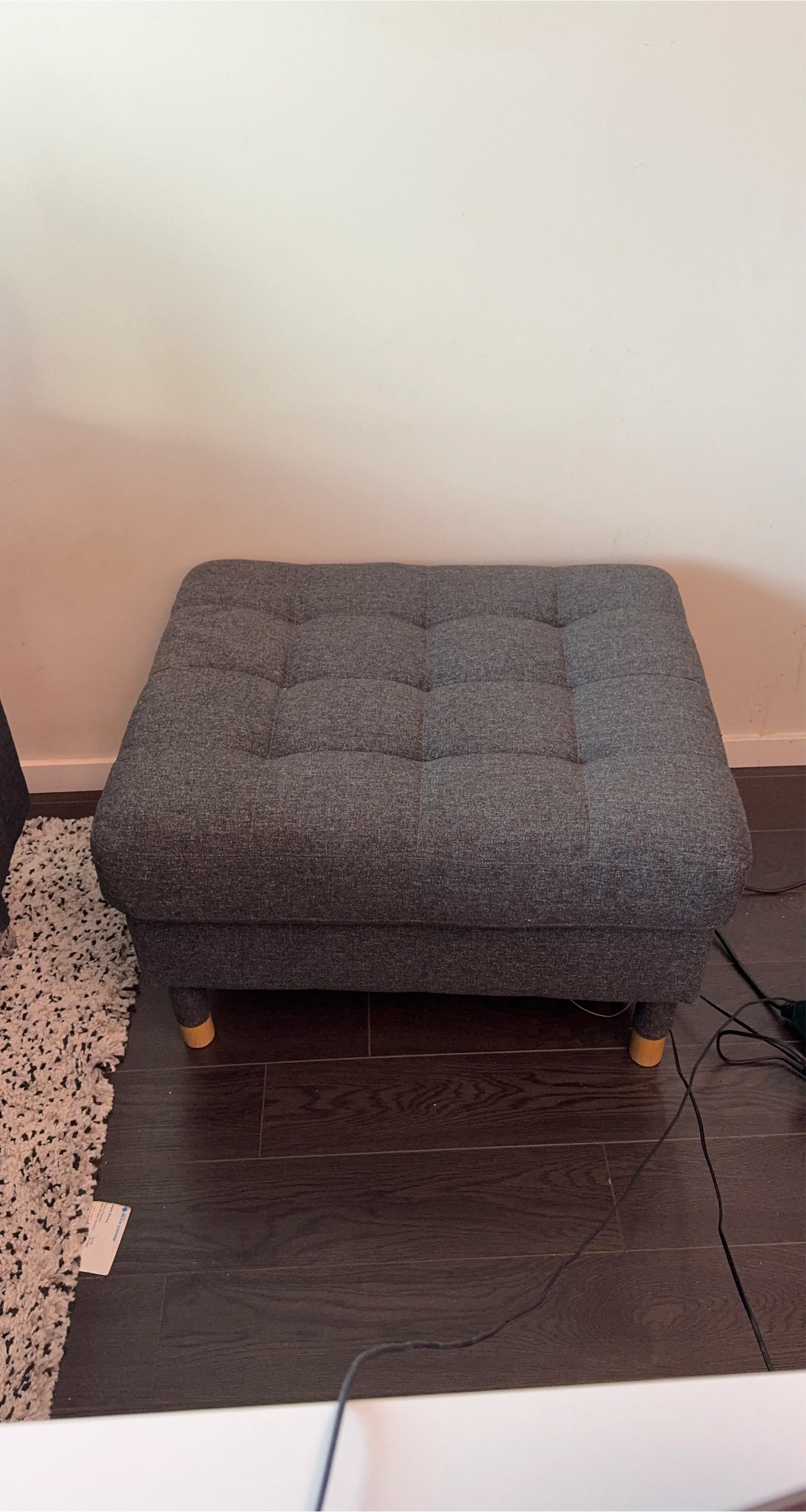 Selling a grey tufted ottoman. It's in great shape and would be a nice addition to any living space!
