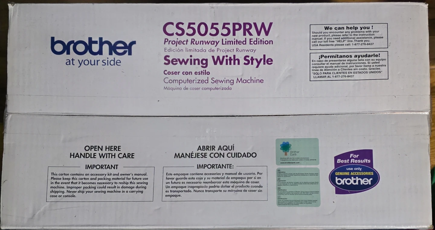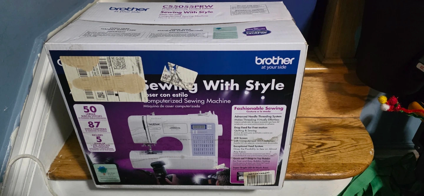 Selling a Brother CS5055PRW Project Runway Limited Edition sewing machine! It's in excellent condition and comes with the original box. This computerized sewing machine offers a variety of features for all your sewing needs, including 50 unique built-in stitches and an advanced needle threading system. The super bright LED-lit work area makes sewing a breeze!