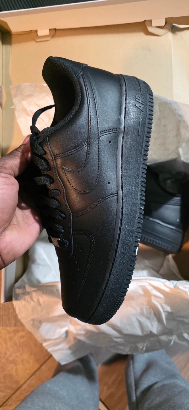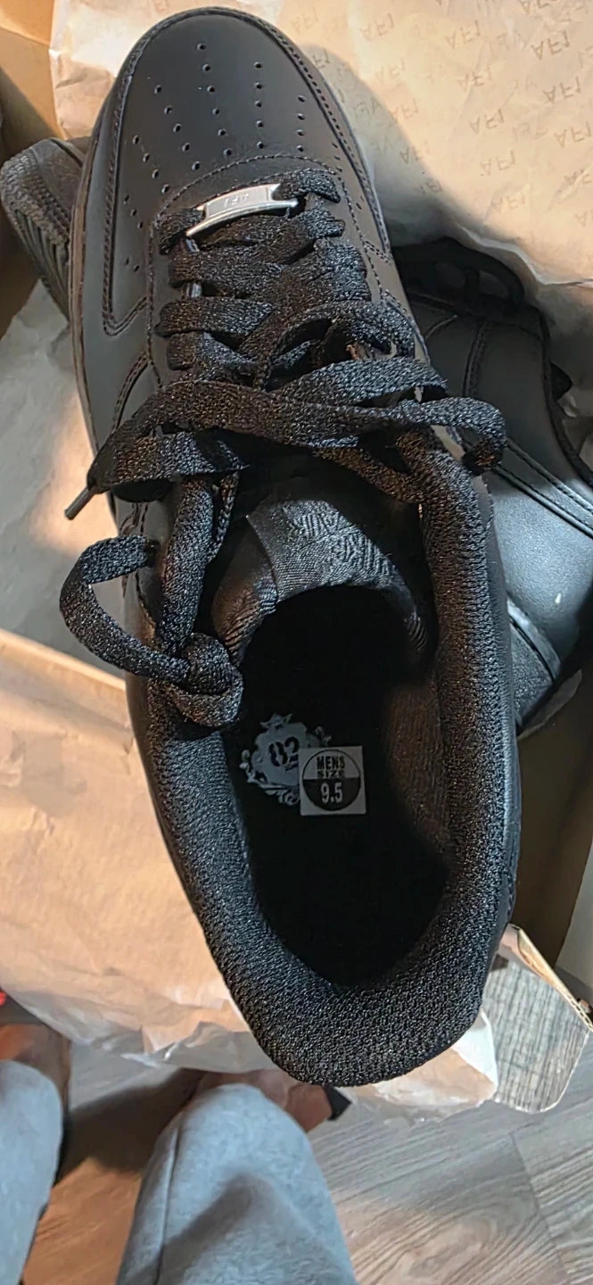 Selling a pair of Nike Air Force 1 '07 in all black. The shoes are in excellent condition and come with the original box. They are men's size 9.5.