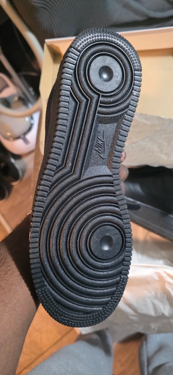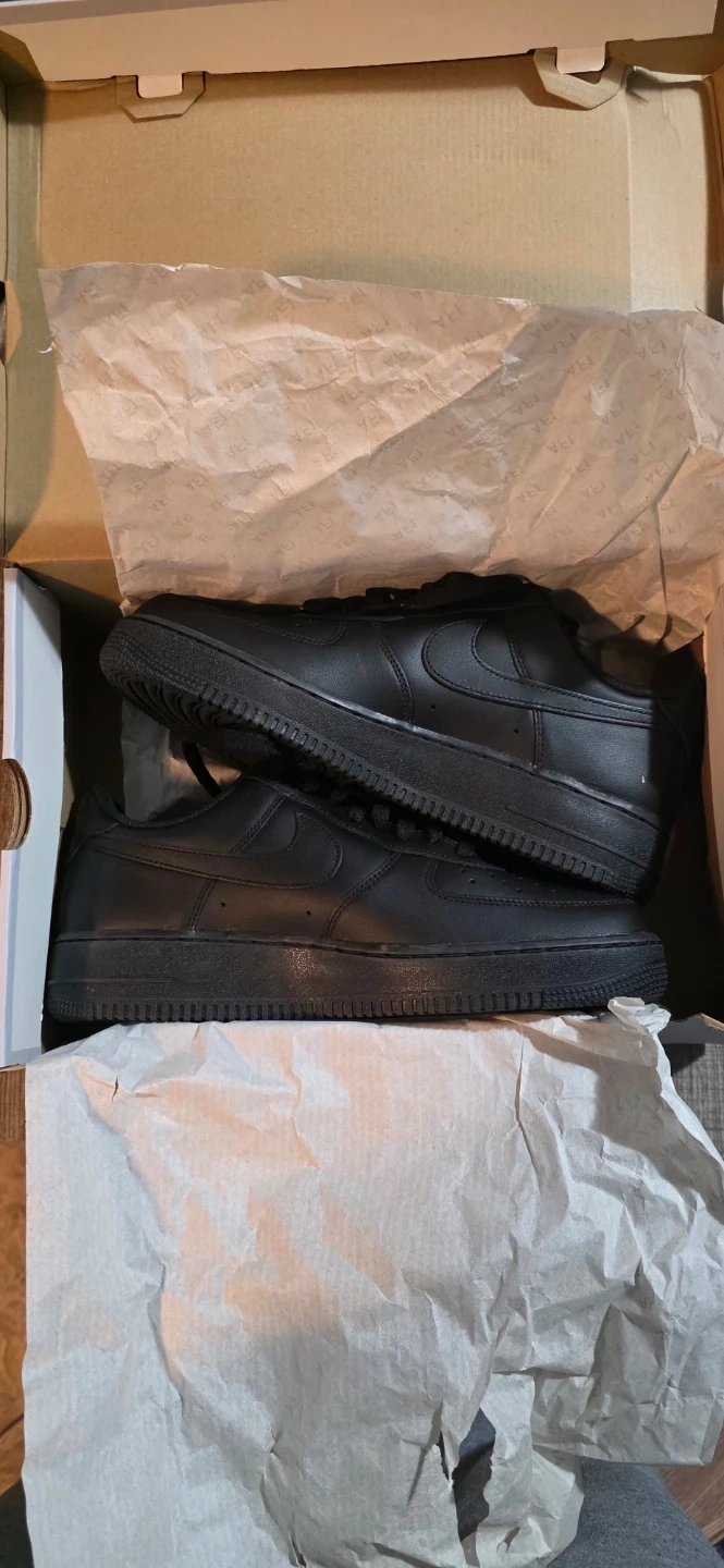 Selling a pair of Nike Air Force 1 '07 in all black. The shoes are in excellent condition and come with the original box. They are men's size 9.5.