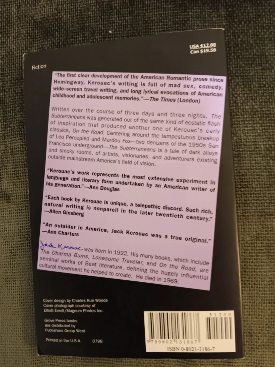 Selling a copy of "The Subterraneans" by Jack Kerouac! It's a novel full of mad sex, comedy, and widescreen travel writing. A classic of American childhood and adolescent memories!