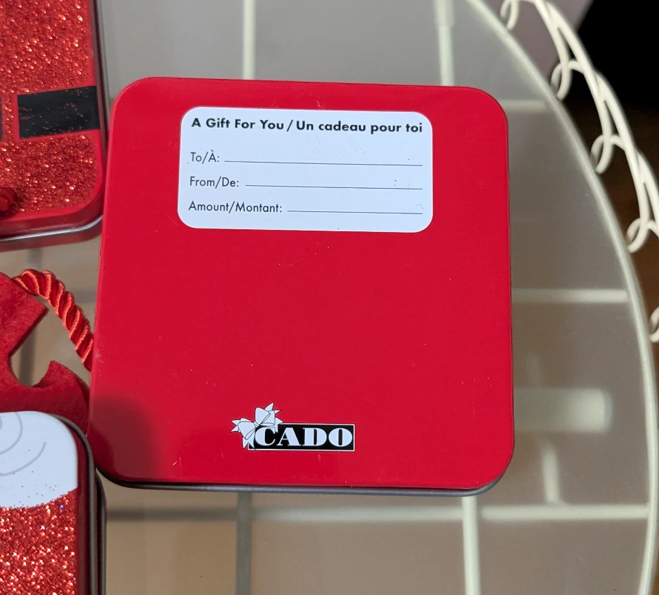 adorable CADO Christmas gift tins! They're perfect for adding a festive touch to your holiday decor or for gifting small treats. They come in various designs, including Santa, a snowman, and a Christmas tree. They are in great condition and ready to bring some holiday cheer!
