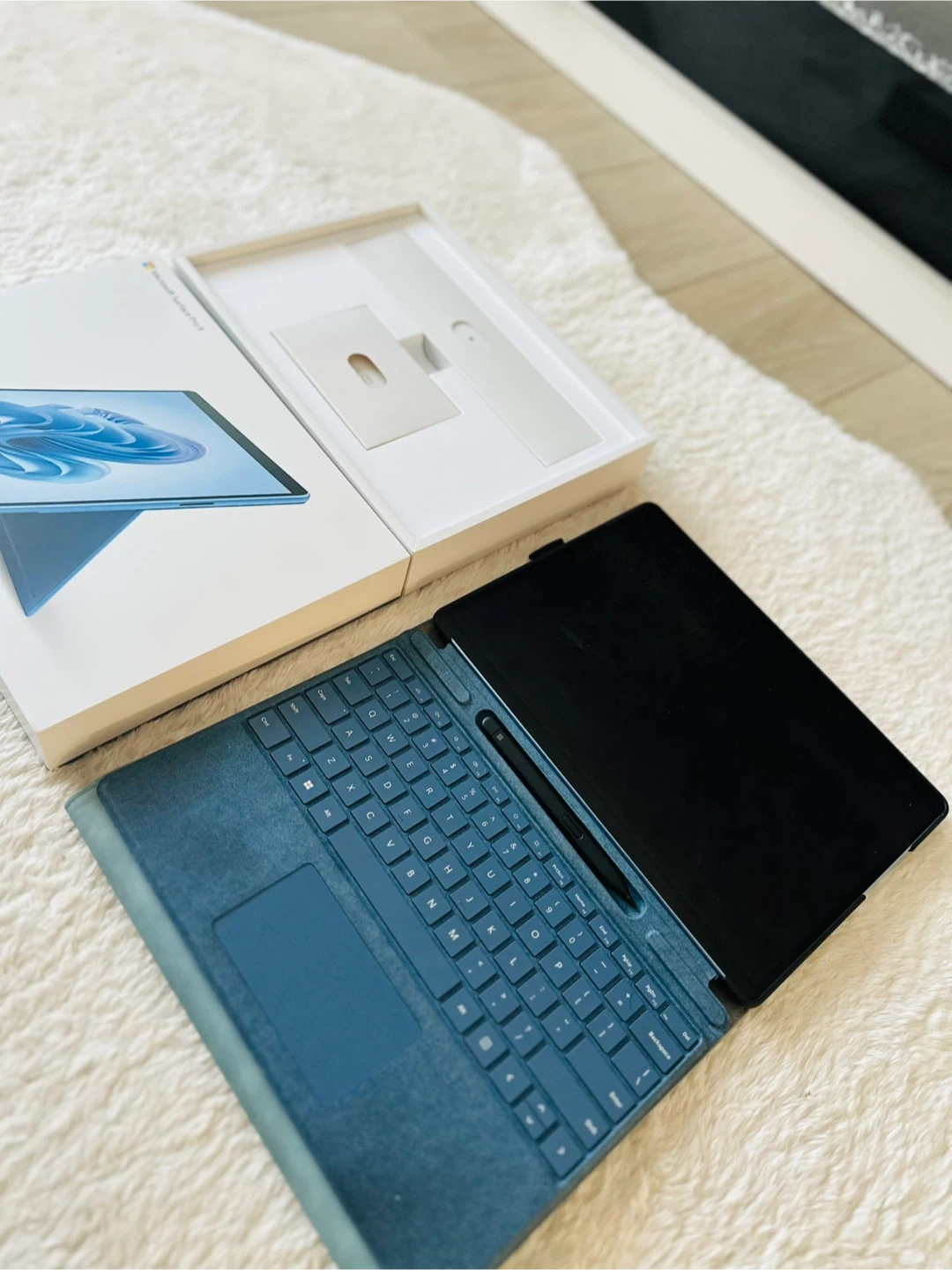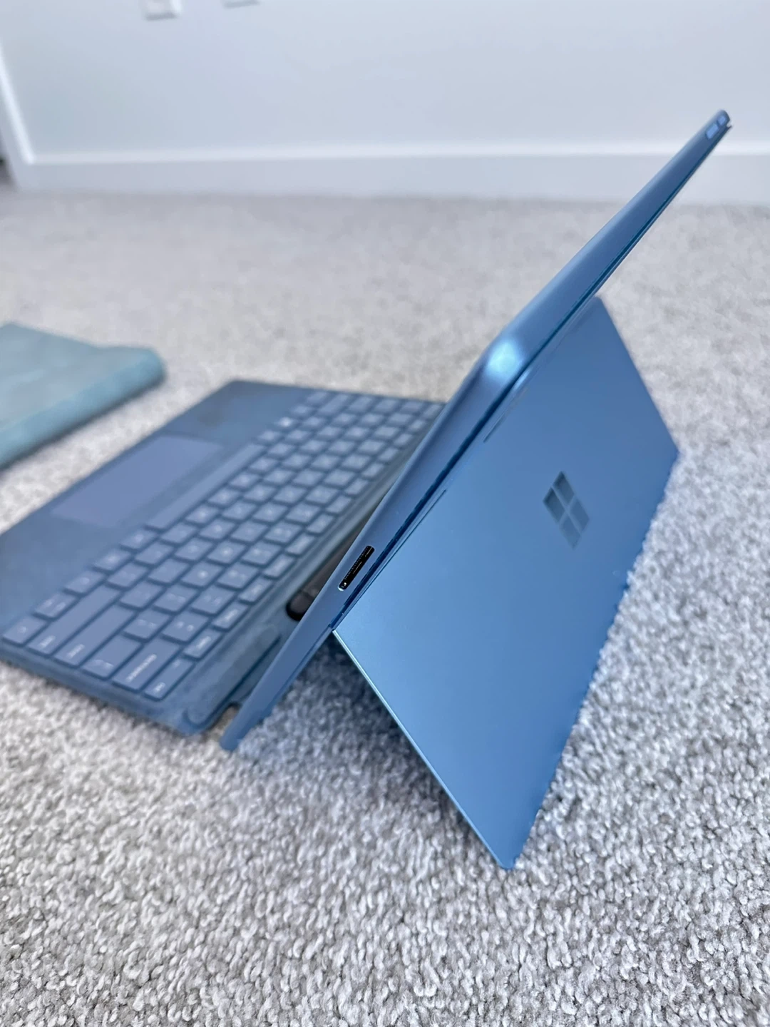 Selling a Microsoft Surface Pro 9 in excellent condition! Key specs: - 12th Gen Intel Core i7 processor - 16GB RAM - 256GB SSD Comes with the Signature Keyboard with Slim Pen 2 and a case. The box is included! ‭Microsoft Surface Pro 9 13" 256GB Windows 11 Tablet with Intel Evo i7-1255U/16GB‬ RAM‭ ‬-‭ ‬Sapphire with Pencil Keyboard Blue Casing 12th Generation