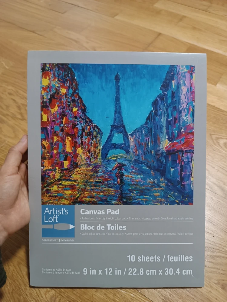 Selling an Artist's Loft Canvas Pad. It's 9 inches by 12 inches (22.8 cm x 30.4 cm) and contains 9 sheets (it was 10 sheets but 1 was used.
