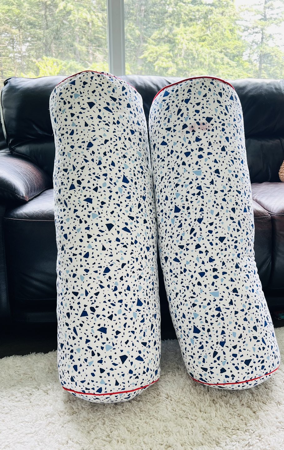 Gently used cylindrical pillows - 2 for $20 or 1 for $15. One has a small stain.