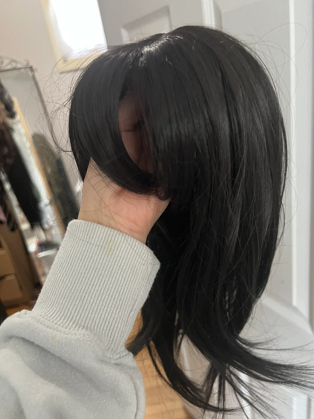 Selling a black hair topper. Medium length- 14” long. Perfect to add a volume to your existing hair. No need to put a hair cap. Just clip it on top of your hair.