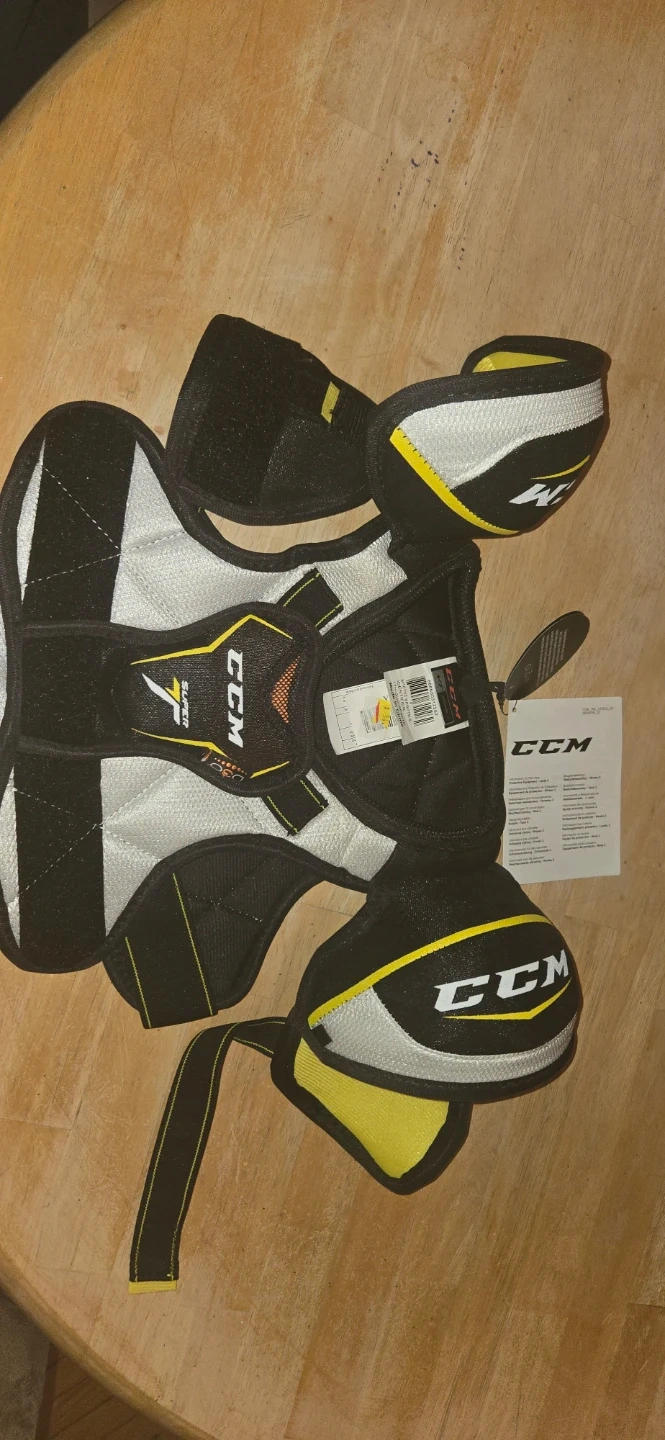 Selling a brand new with tags CCM Super T hockey shoulder pad. It's in excellent condition and ready for the rink! YOUTH SMALL