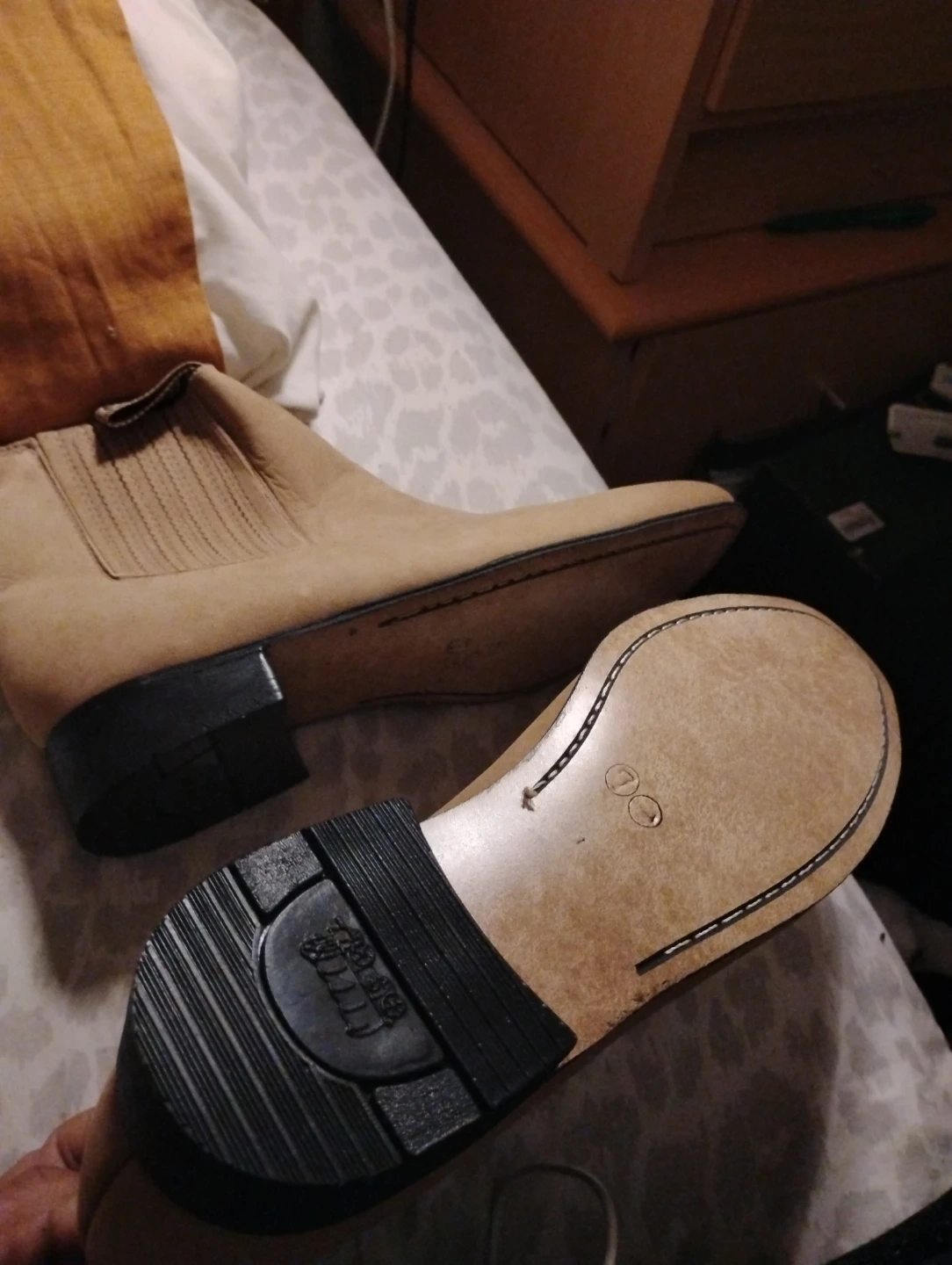 Selling a pair of Tony D' Banderas Chelsea boots in a tan suede. They are a size 7. The boots have a classic Chelsea boot style with elastic side panels and a sleek silhouette. Perfect for adding a touch of style to your outfit!