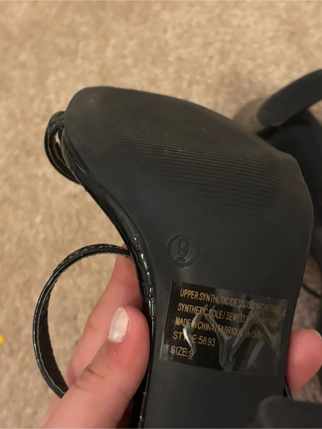 Selling a pair of black heeled mules in size 9. They have a stylish, strappy design. Perfect for dressing up any outfit!